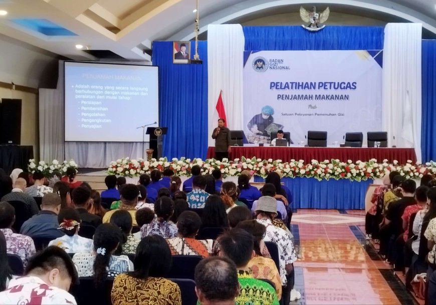 MANOKWARI - Memperkuat pelaksanaan Makan Bergizi Gratis (MBG) di Provinsi Papua Barat khususnya di Kabupaten Manokwari dan Manokwari Selatan, Badan Gizi Nasional melatih 900 petugas penjamah makanan dari 22 dapur Satuan Pelayanan Pemenuhan Gizi (SPPG), di Swissbell dan Aston Niu Manokwari, Sabtu (13/9/2025).