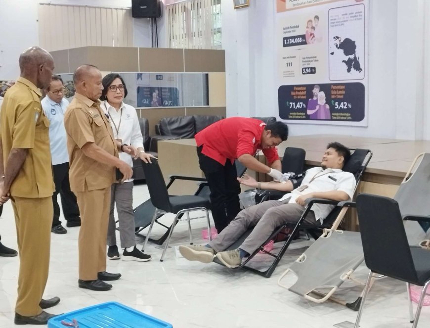 MANOKWARI - Rangkaian menyambut Hari Statistik Nasional (HSN) 2025 dan sensus Ekonomi 2026, Badan Pusat Statistik (BPS) Provinsi Papua Barat menggandeng Dinas Ketahanan Pangan Provinsi Papua Barat, Bank Indonesia dan Palang Merah Indonesia menggelar pangan murah dan donor darah dihalaman kantor BPS Papua Barat, Sowi, Manokwari, Selasa (23/9/2025).