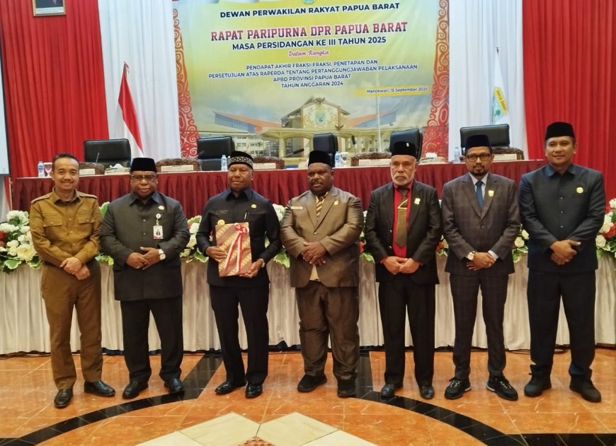 "Saya menyampaikan terima kasih kepada pimpinan dan anggota dewan yang terhormat yang telah membahas dan menyetujui Ranperda Pertanggunjawaban APBD 2024 Provinsi Papua Barat Tahun 2024," tandas Gubernur.