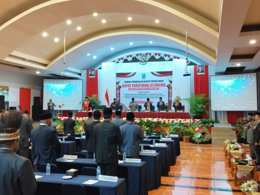 MANOKWARI - Dewan Perwakilan Rakyat Provinsi (DPRP) Papua Barat menggelar rapat paripurna istimewa dengan agenda pengambilan sumpah janji dan pelantikan Frits Bernard Indou sebagai Wakil Ketua III DPRP Papua Barat jalur pengangkatan sisa masa jabatan 2024–2029, sekaligus pembukaan Masa Persidangan I Tahun Sidang 2026.