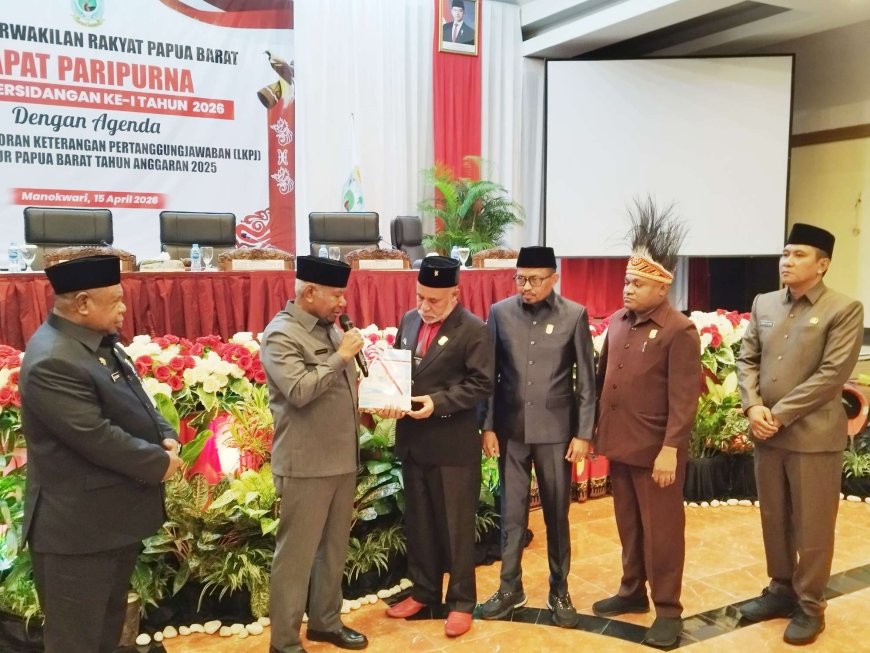 Dalam kesempatan tersebut, Gubernur menyampaikan apresiasi kepada DPR Papua Barat, Forkopimda, serta seluruh elemen masyarakat atas dukungan terhadap jalannya pemerintahan dan pembangunan daerah.