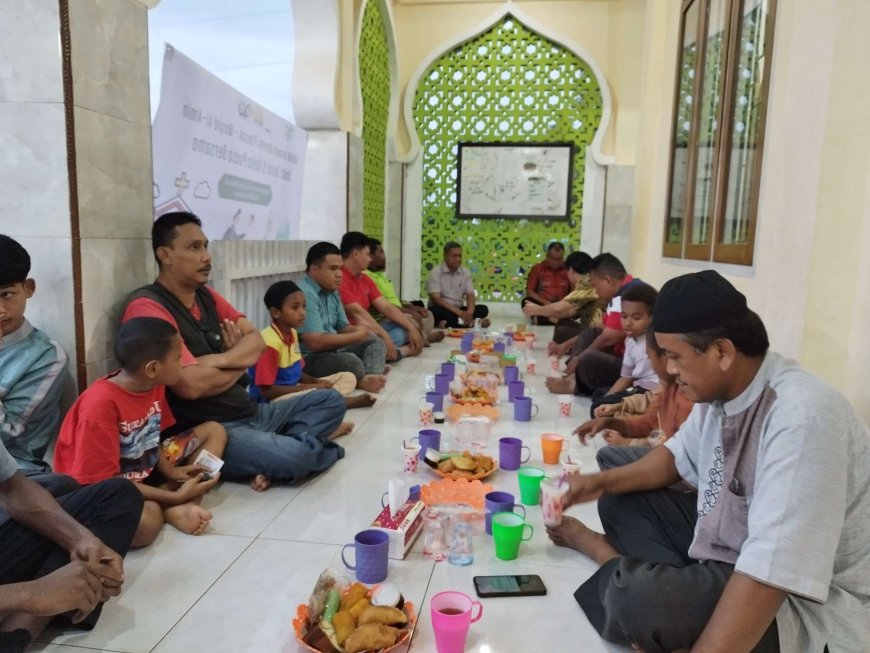 “Dari pagi kami sudah bersama-sama kerja bakti di halaman Masjid Al-Amin, dan sore hari ini kita bisa berkumpul bersama untuk buka puasa,” katanya.