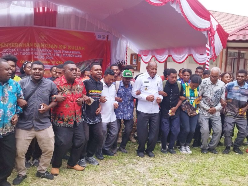 MANOKWARI - Komitmen dalam meningkatkan kualitas sumber daya manusia di Tanah Papua kembali ditunjukkan oleh Dr. Filep Wamafma, S.H., M.Hum., Ketua Komite III DPD RI asal Papua Barat sekaligus Ketua Sekolah Tinggi Ilmu Hukum (STIH) Manokwari kembali penyerahan beasiswa KIP Kuliah untuk 500 Mahasiswa STIH Manokwari.