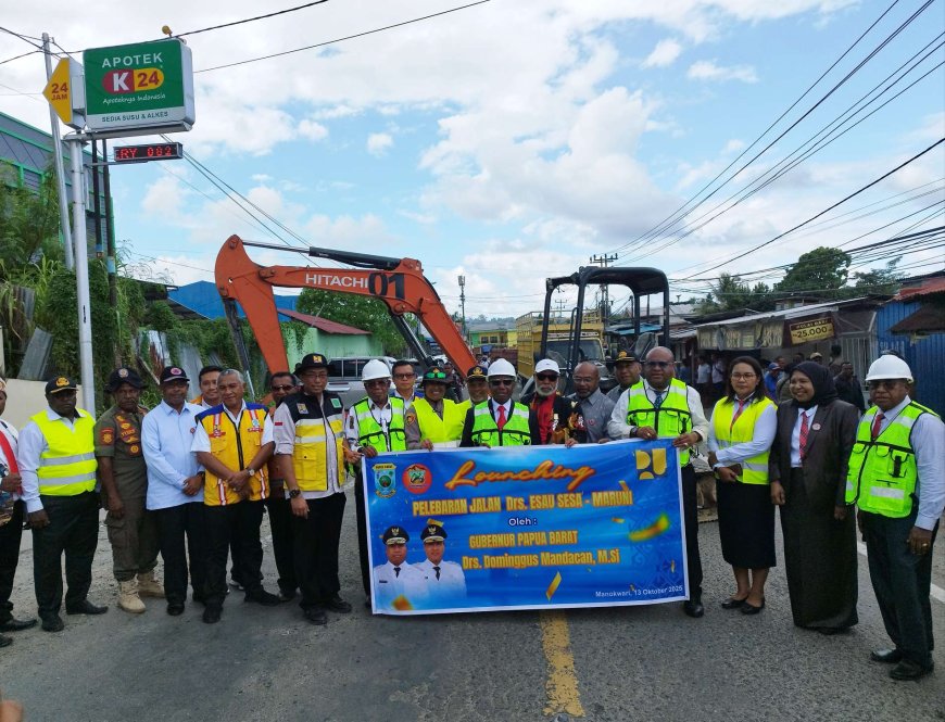 MANOKWARI - Pemprov Papua Barat kembali memulai pembersihan area perluasan ruas jalan Esay Sesa - Maruni, ditandai dengan pembongkaran dan penanaman patok oleh Gubernur Drs. Dominggus Mandacan M.Si di jalan Esau Sesa, Senin (13/10/2025).