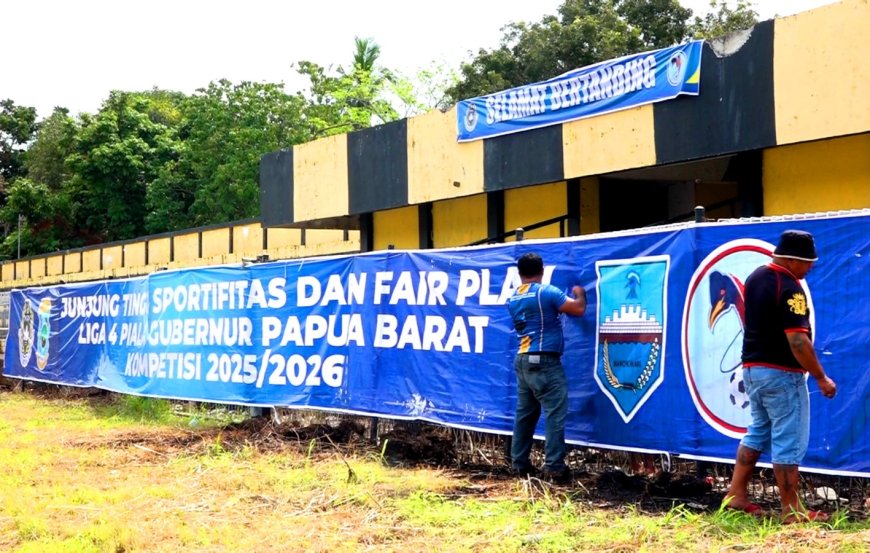 MANOKWARI – Panitia pelaksana terus mematangkan persiapan infrastruktur Stadion Sanggeng, Manokwari, menjelang bergulirnya kompetisi Liga 4 Piala Gubernur Regional Papua Barat musim 2025/2026.