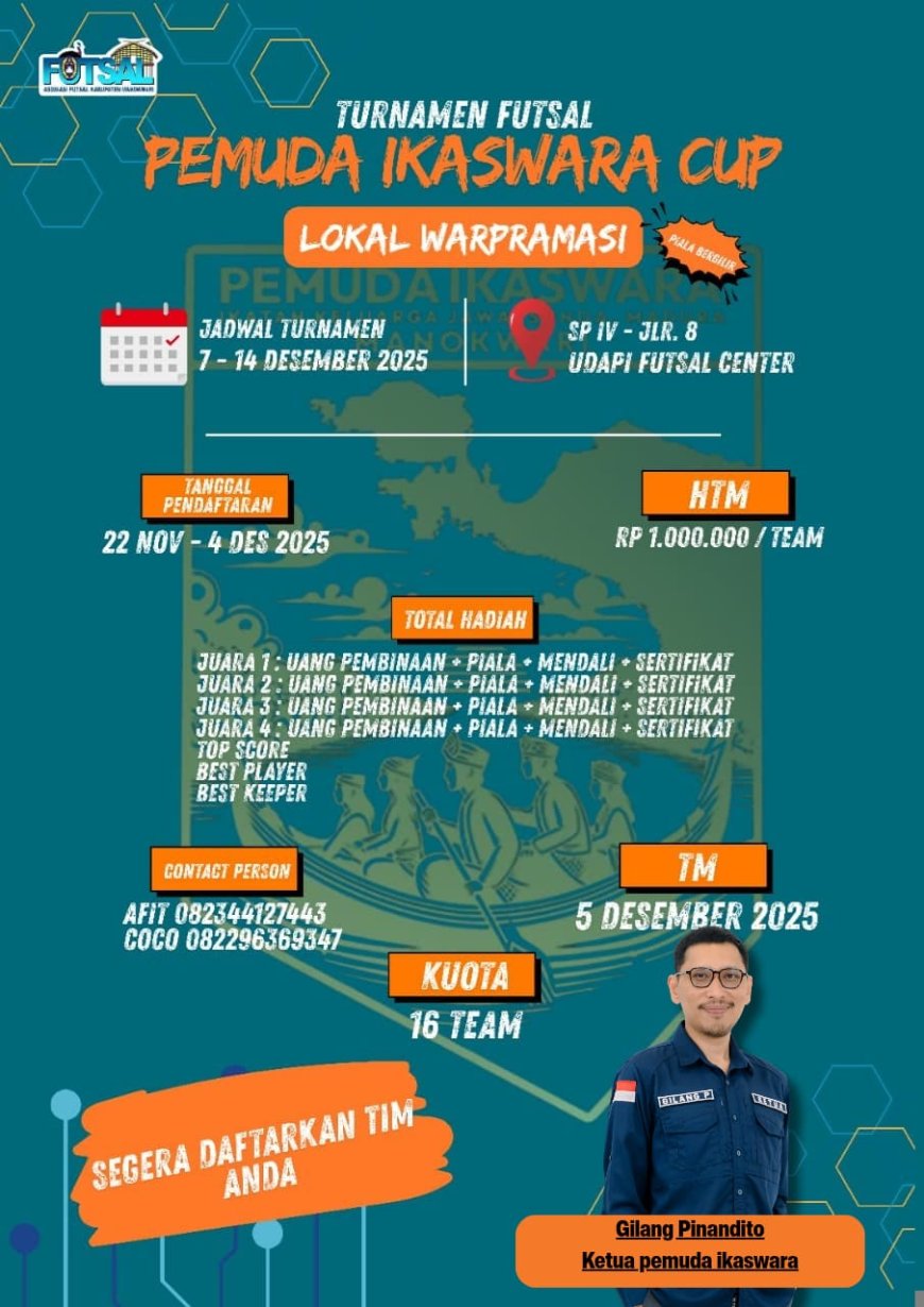 Ketua Pemuda Ikaswara Manokwari, Gilang Pinandito, S.St., M.Kesos., berharap turnamen ini dapat menjadi wadah pembinaan sekaligus ruang kompetitif bagi pemuda di wilayah Wapramasi dan Manokwari.