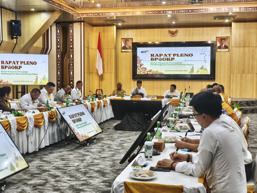 MANOKWARI - Wakil Presiden Republik Indonesia (Wapres-RI) pimpin rapat pleno bersama Badan Pengarah Percepatan Pembangunan Otonomi Khusus Papua (BP3OKP) dan Komite Eksekutif Percepatan Pembangunan Otonomi Khusus Papua (KEP2OKP) di gedung Keuangan Negara (GKN) Manokwari, Rabu (4/11/2025).