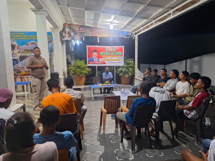 MANOKWARI - Anggota DPR Papua Barat, Xaverius Kameubun SH, menerima beragam aspirasi saat menggelar reses bersama mahasiswa dan pemuda di Manokwari. Salah satu keluhan utama adalah kemacetan panjang di Jalan Esau Sesa akibat antrean BBM, Sabtu (1/11/2025).